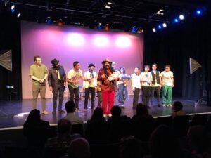 باقی تیم بازیگری، گرچه همه با تلاش بودند، اما انگار نوعی وصله پینه شده بودند. چهل تیکهای که همخوانی میانشان توسط کارگردان ایجاد نشده بود. به قول قدیمیها تمرینها انگار در اتوبوس و وقت سفر رخ داده بود. میدانم تاتر ایرانیها بیچیز است و حتی ما تجربهی تمرینهای اسکایپیها هم در پرونده کاری تاتر ایرانیها داریم، اما چنین تدابیری درخور چنین نمایشهایی با اینهمه بازیگر نیست. ای کاش تیم نمایش روی صندلی و دور یک میز مینشستند و متن را برای ما میخواندند و ما با تمرکز تمام متن را میشنیدیم. و تنها در آن صورت بود که میتوانستیم بدان پرسش به ظاهر مهم نویسنده پاسخی درخور بیابیم.
