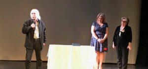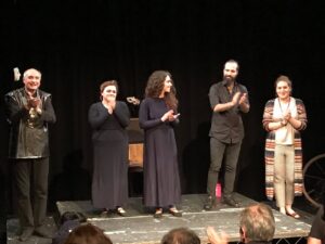 با قدردانی از آقای جنتی نوبت به سپاسگزاری از تیم برگزارکنندهی فستیوال رسید و یکبار دیگر همه آن کسانی که چهار روز تمام وظایف و کارهای روزمره فستیوال را عملن به عهده داشتند، به روی صحنه آمدند. در اینجا خانم فرخنیا مجبور به تصحیح سخنان خرسندی برآمد و تاکید کرد که همکارانش فقط زن نبودند و هیچ تلاشی برای فمینست کردن تیم همکاران ندارند و کارشان و تلاششان تنها تاتری ست.