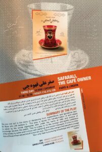 نمایش که بیشتر نوعی کابارت به قول آلمانیها و یابه قول انگلیسیها استندآپ کمدی بود، داستانش مردی بود که ابتدا از پدرش قهوهخانهای به ارث برده و سالها در انجا به کار مشغول بوده است تا اینکه روزی راهی خارج میشود. (؟) و حالا برایش نامههایی با پرسشهای مختلف همراه آن از ایران میرسد و نویسندگانش از او پاسخ پرسشها را طلب میکنند. پرسشها متنوع هستند، اما در محتوا اشاره های مستقیم و غیرمستقیم در بارهی باورهای خرافی مردم و تحمیلات حکومت بر مردم است. مشکل اصلی در اینجا بستر اولیهی نمایش است. چرا باید از او پاسخ پرسش را بخواهند؟ آیا صفرعلی مردی اندیشهورز یا مرکز و نهادی اینچنانی دارد؟ شبکه یا مرکز رسانهای ست؟ پاسخ بدین پرسشها روشن نیست. پس نویسنده که کارگردانی نمایش را هم به عهده دارد، یعنی آقای حمید دانشور، تنها قصدش طرح مسائلی بوده که وی را رنج میداده و باید جانش را از آنها رها میساخته. به نظر میرسد اندکی تعجیل در طرح اولیهی نمایش پیش آمده که بستر نمایش لنگ میزند.