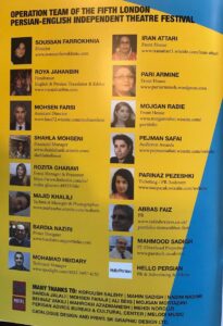 به قصد دیدن پنجمین فستیوال تاتر ایرانیان ِلندن در انگلستان هستم. اگر همهی عوامل یاورم باشند، سعی میکنم برای هر روز این فستیوال چهار روزه و هر نمایشی که به دیدنش موفق میشوم، مطلبی تهیه کنم.